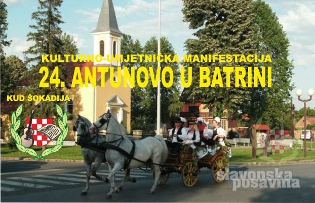 U organizaciji KUDa ŠOKADIJA iz Batine, u subotu 17. lipnja 2017. g. središnji kulturno-umjetnički događaj u novokapelačkoj općini ovog vikenda je 24. Antunovo u Batrini-smotra izvornog slavonskog folklora. U 18.00 sati kreće povorka svečanih konjogojskih zaprega i jahača kroz Batrinu. U 20.00 sati u Školsko sportskoj dvorani nastupaju: