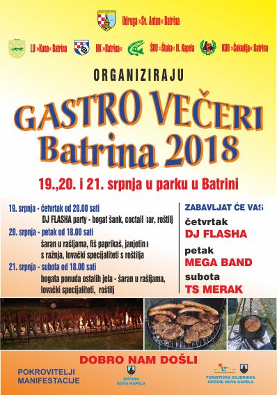 Klikom na plakatu možete vidjeti detaljni program Gastro večeri-Batrina 2018.