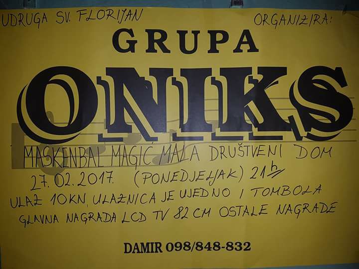Udruga Sveti Florijan organizira Maskenbal u ponedjeljak 27. veljače u Magić Maloj a za dobru atmosferu zadužena je grupa Oniks.