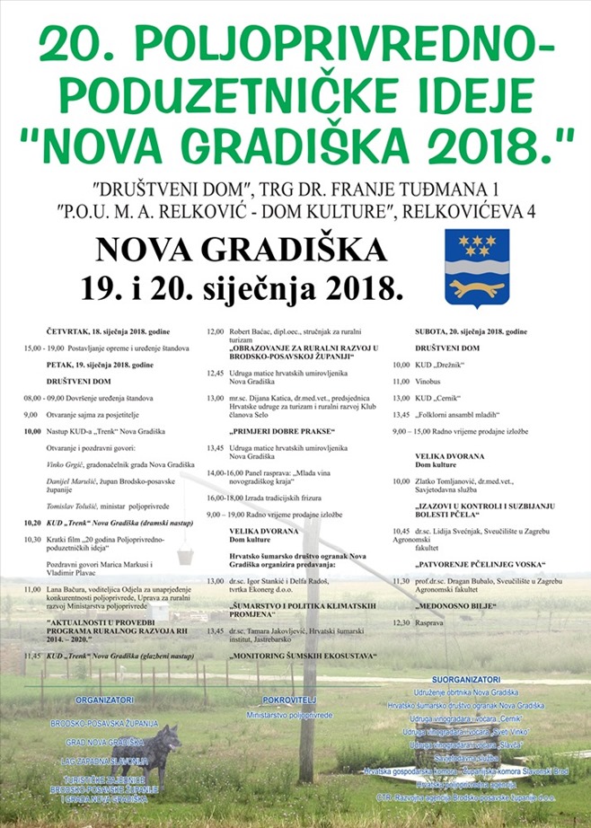 Već tradicionalno, Brodsko-posavska županija grad Nova Gradiška, LAG Zapadna Slavonija te Turističke zajednice BPŽ i grada Nove Gradiške, organiziraju savjetodavno-izložbenu manifestaciju »Poljoprivredno poduzetničke ideje 2018.«