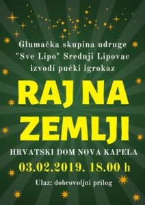 „RAJ NA ZEMLJI“ U NEDJELJU U HRVATSKOM DOMU U NOVOJ KAPELI
