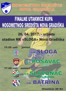 Predigru u finalu kupa juniora u 15.00 sati igrati će ekipe Sloge iz Nove Gradiške i Posavca iz Davora.