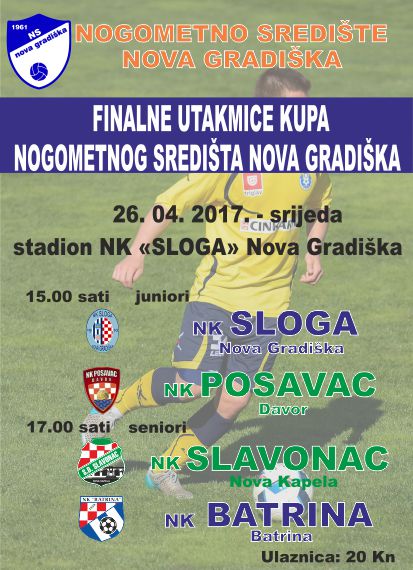 U srijedu na stadionu NK Sloge u Novoj Gradiški, s početkom u 17.00 sati, finalnu utakmicu kupa Nogometnog središta Nova Gradiška, igraju NK Slavonac Nova Kapela i NK Batrina. Biti će to „nogometna poslastica“ za sve ljubitelje nogometa sa šireg novogradiškog područja. Susret dvaju susjednih klubova, sportskih prijatelja, ali  na utakmicama, ljutih sportskih rivala, članova 1. ŽNL. BPŽ. Biti će to pravi lokalni „el clasico“. Zluradi nepoznavatelji odnosa, rekli bi „ovo je utakmica visokog rizika“. Griješe, ovo je utakmica „velikog sportskog rivalstva“. Naravno da je osvajanje kupa čast, ali uvjereni smo da će poraženi stisnuti ruku pobjedniku i zajedno popiti piće. Život će ići dalje, bez obzira na rezultat. Ostati će i dalje sportski prijatelji, kumovi, obitelji…