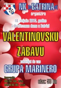 Provedite ugodnu noć 10. veljače 2018. (subota), u prekrasnoj dvorani batrinskog Društvenog doma na tradicionalnoj Valentinovskoj zabavi za samo 50 kn po osobi, koja je svake godine sve bolja, zabavnija i veselija